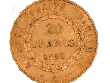 Pièce de 20 F or au Génie (non visible- stockée en banque – récupération sur RDV)