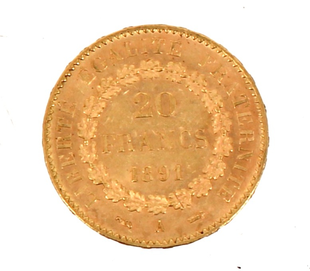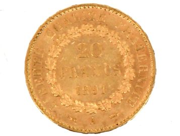 Pièce de 20 F or au Génie (non visible- stockée en