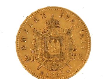 Pièce de 20 F or N III tête laurée »1862″ (non visible- stockée en banque – récupération sur RDV)
