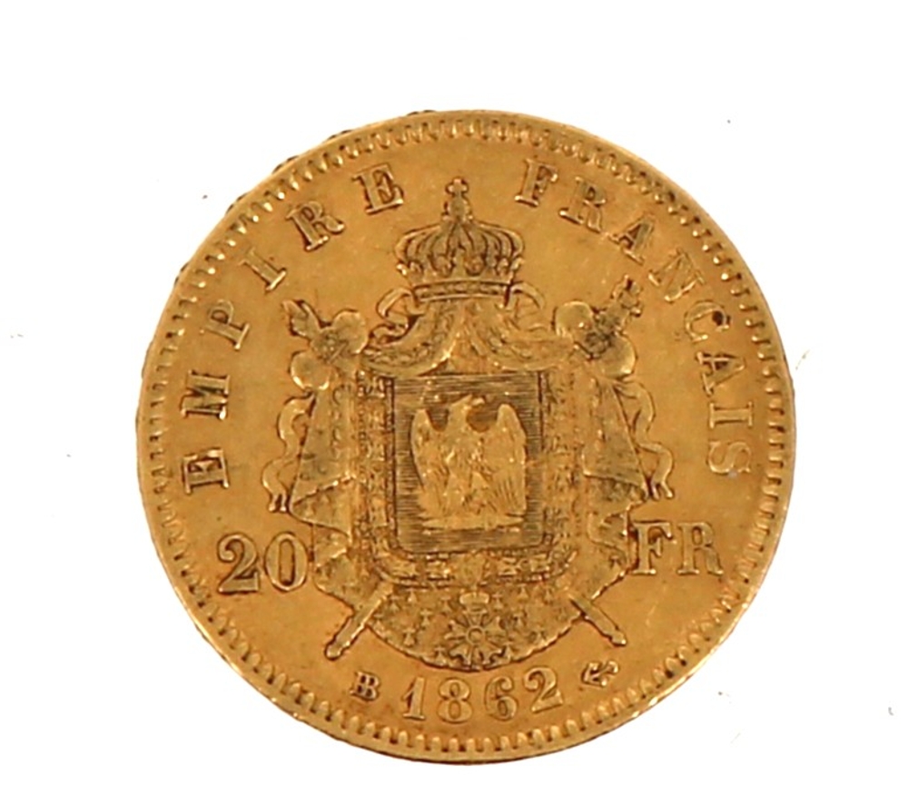 Pièce de 20 F or N III tête laurée »1862″ (non