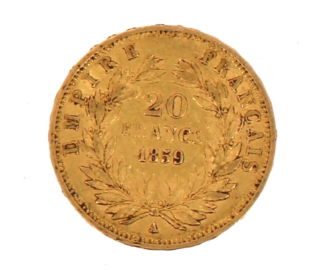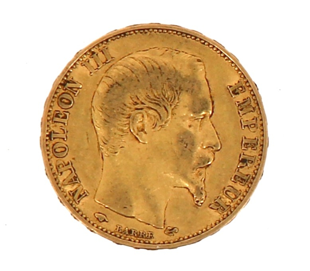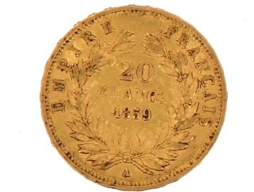 Pièce de 20 F or Napoléon III tête nue (non visible – stockée en banque – récupération sur RDV)
