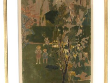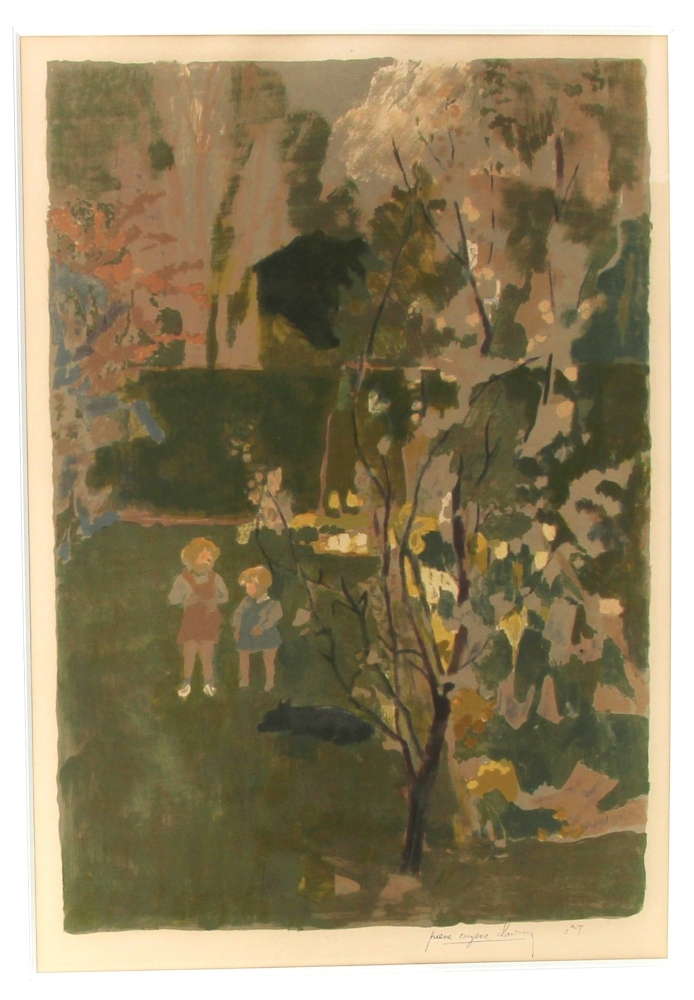 Pierre-Eugène CLAIRIN (1897-1980) « Enfants au jardin », lithographie en couleurs, signée bas droite, 1er T., 58 x 40,5 cm