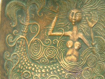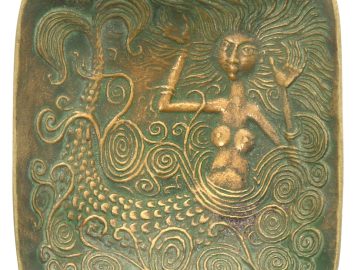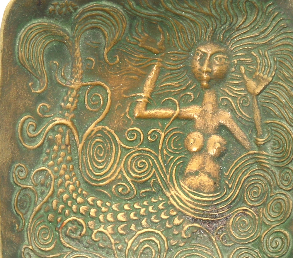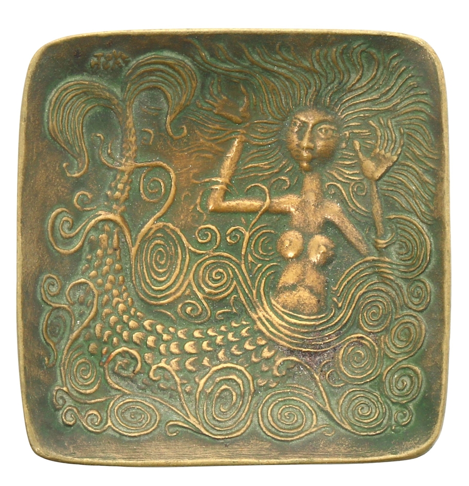 Pierre TOULHOAT (1923-2014) – Coupelle en bronze à décor de Dahut, signée, 11 x 11 cm