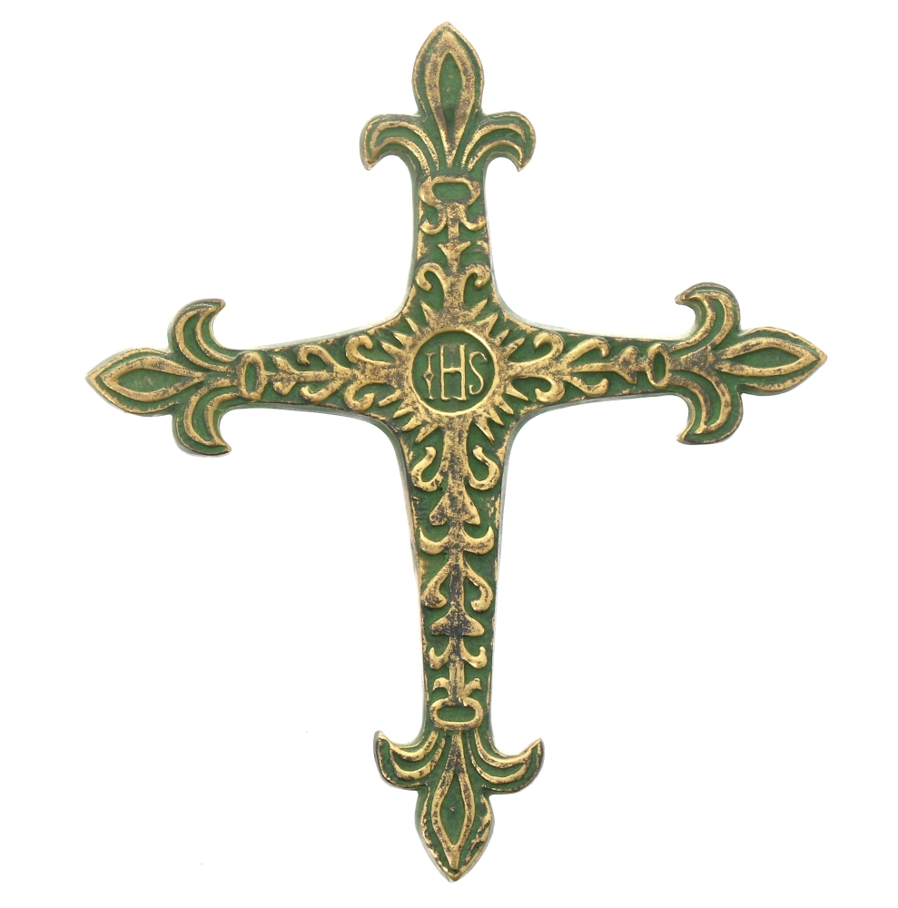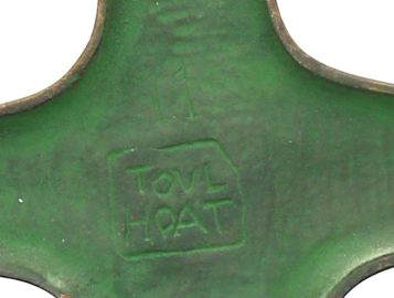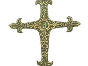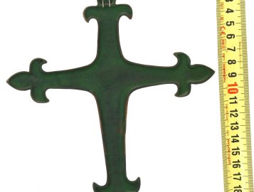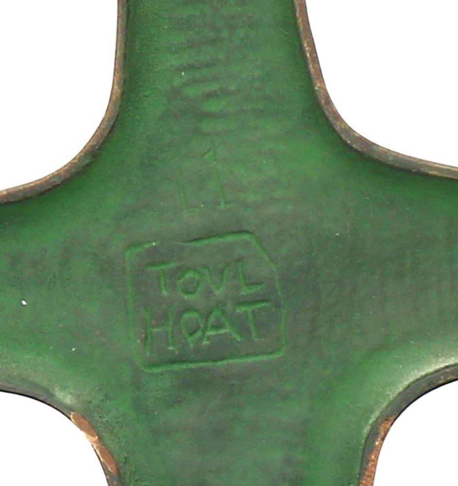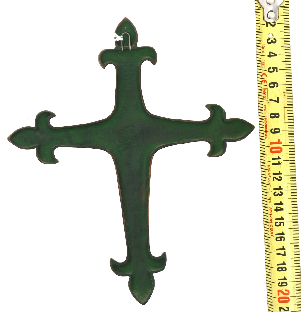 Pierre TOULHOAT (1923-2014) – Croix en bronze à patine vert, signée, 19,5 x 16,5 cm env.
