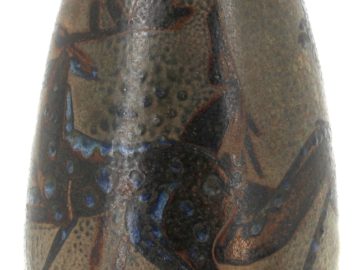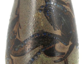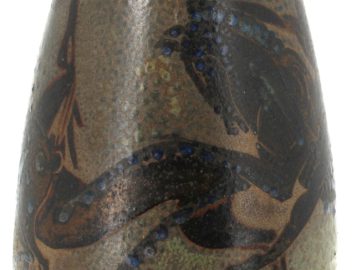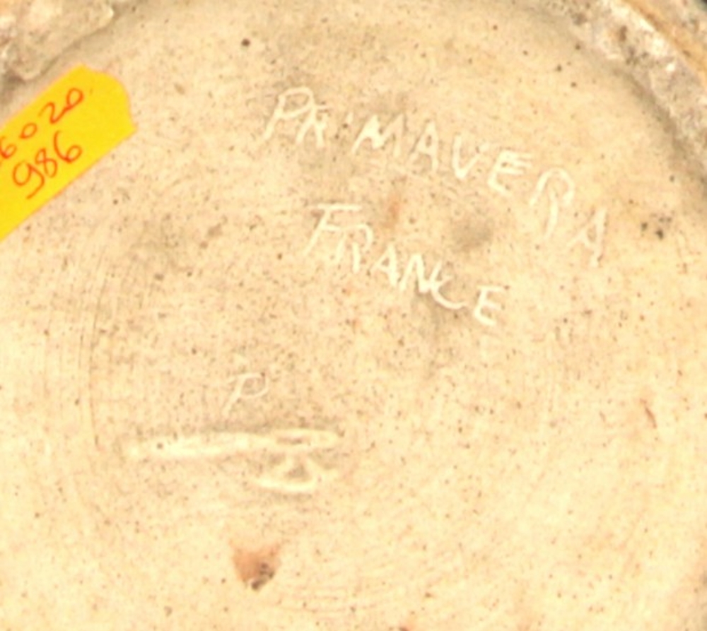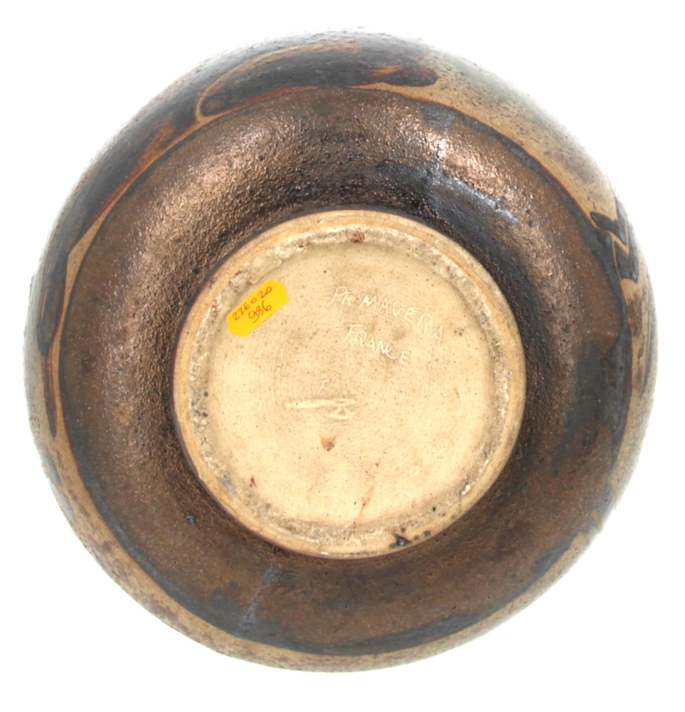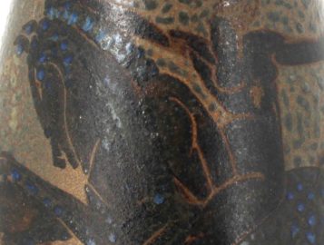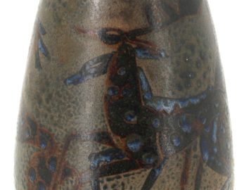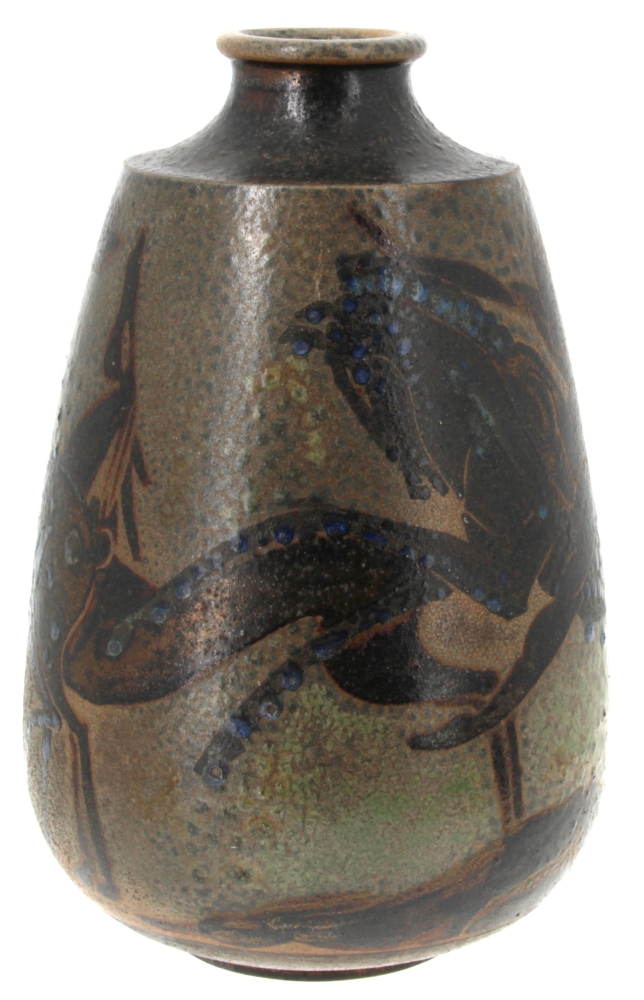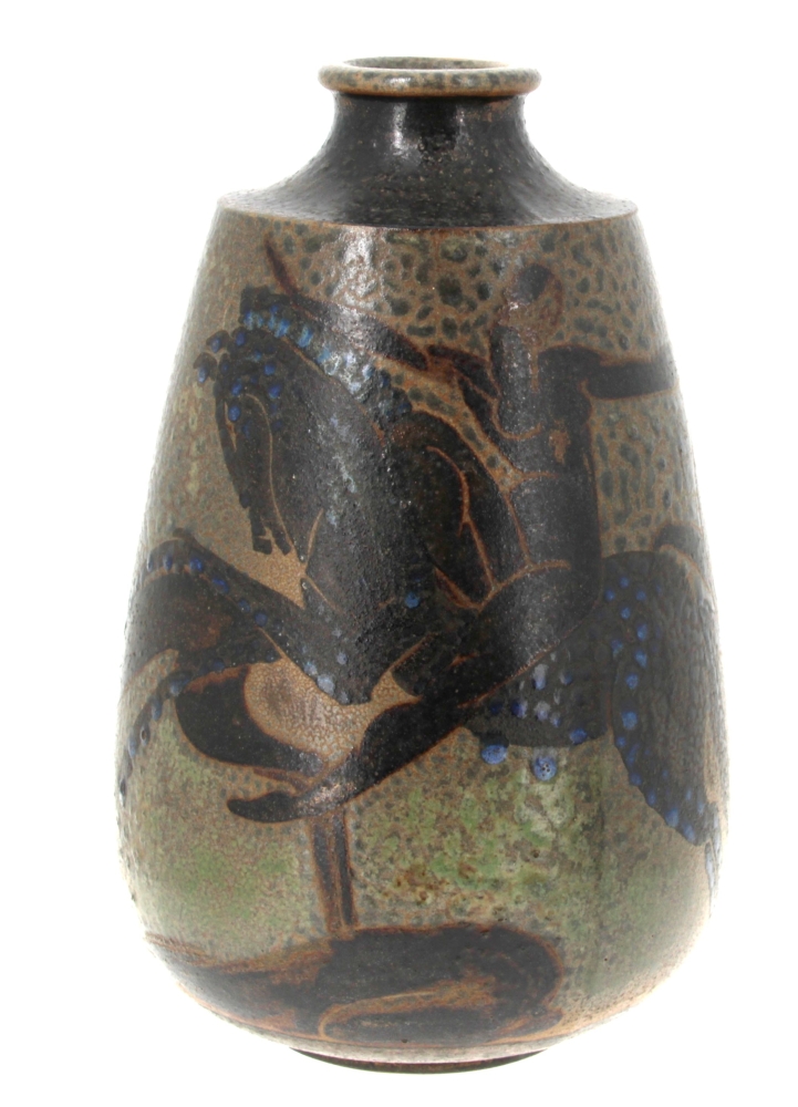 PRIMAVERA (Atelier d’Art du Printemps) & Manufacture de Sainte Radegonde – Vase ovoïde en grès à décor d’une amazone nue à cheval, biche et cerf. Signé en creux « Primavera » et de la hache. H 39 cm