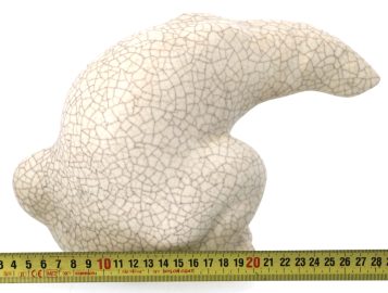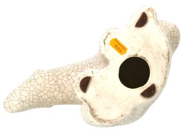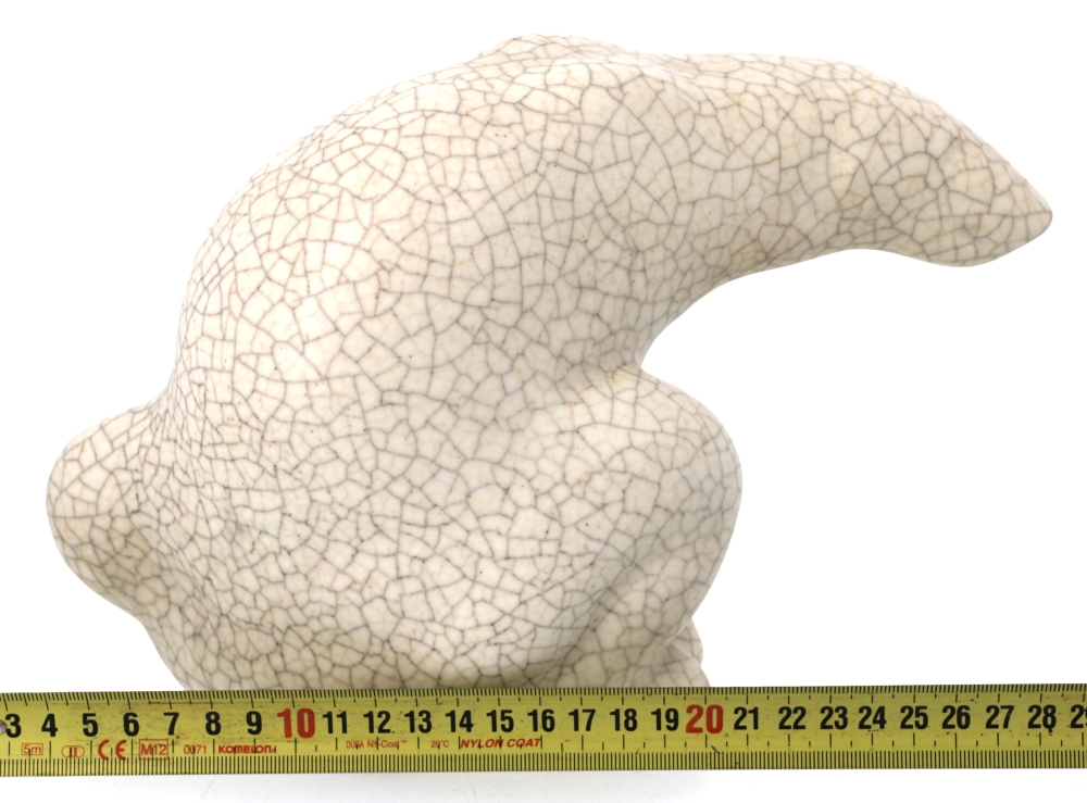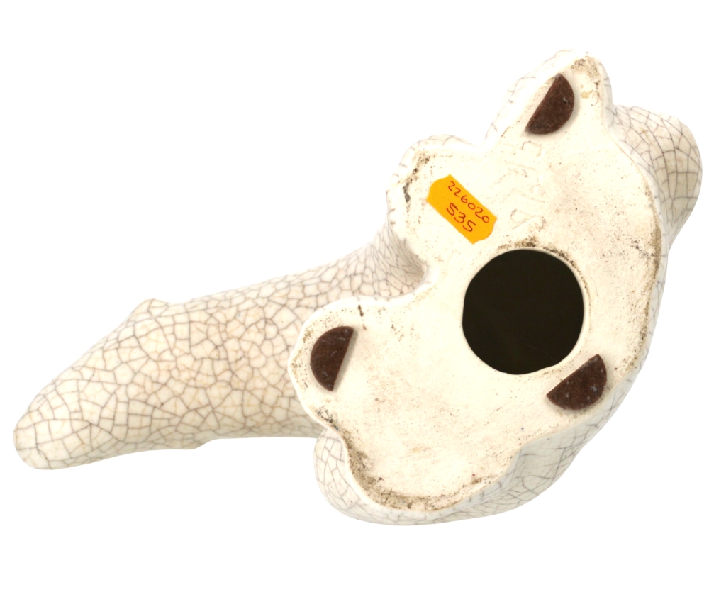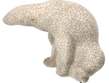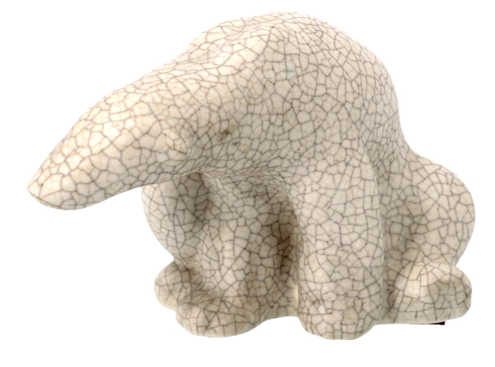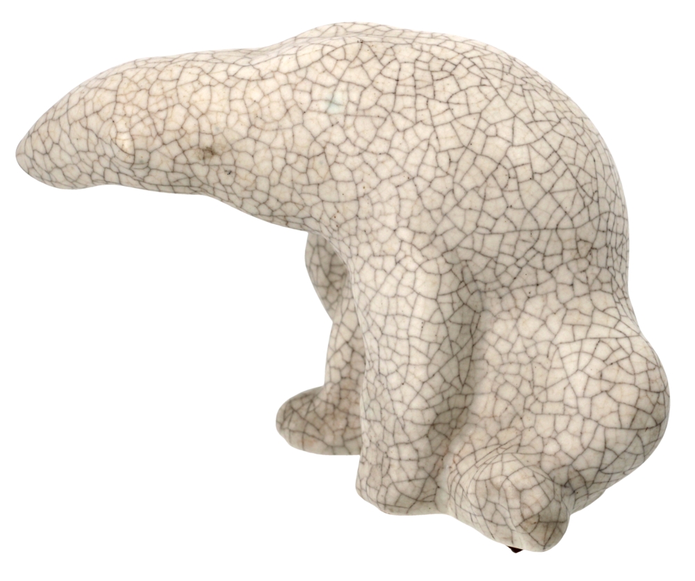 PRIMAVERA (non marqué) – Ours polaire assis. Sujet en faïence craquelée émaillée crème. Numéro gravé sous la pièce en creux « 8693 ». H 17 x L 28 cm env.