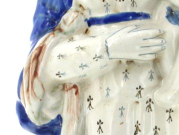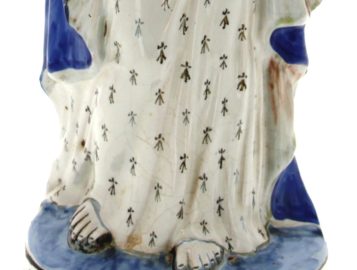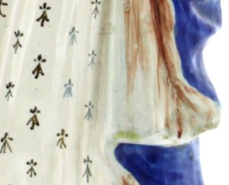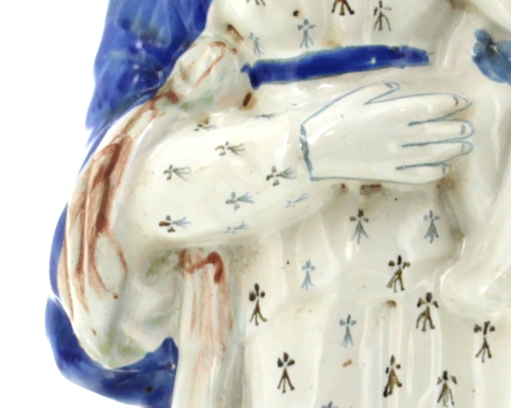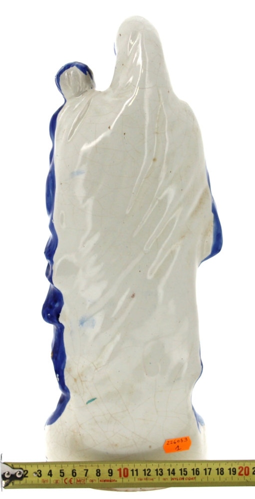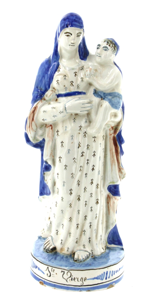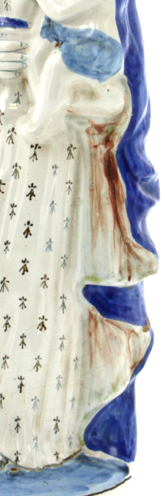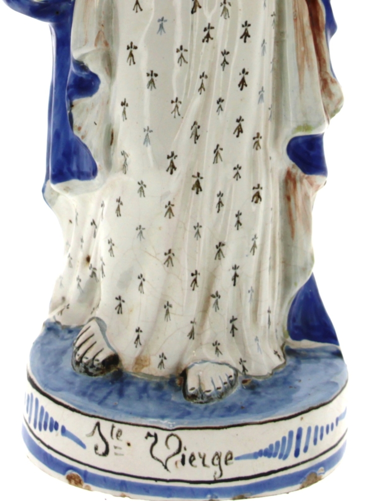 QUIMPER XIXème (avant la marque) « Ste Vierge », statuette en faîence polychrome, H 39 cm (légers défauts de cuisson)