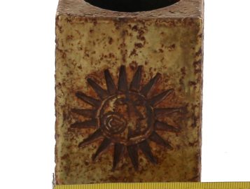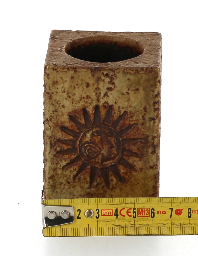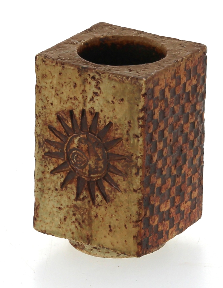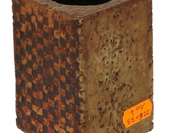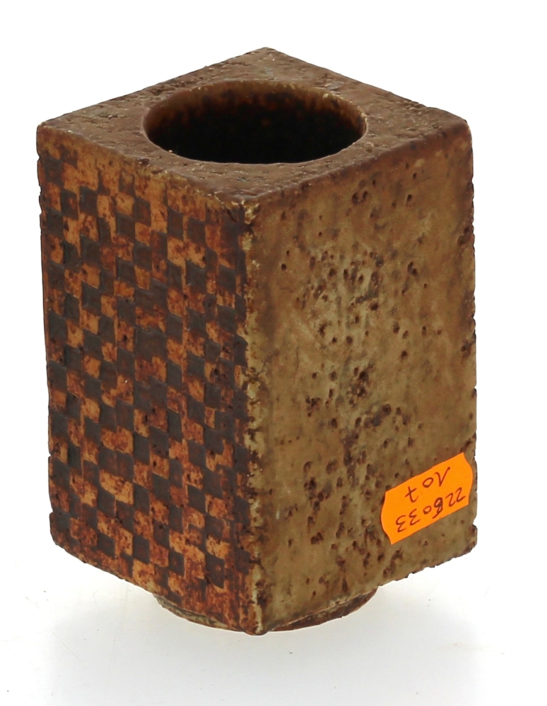 Roger CAPRON (1922-2006) – Petit vase en grès brun à section carrée signé sous la pièce Capron Vallauris, H. 10 cm
