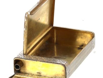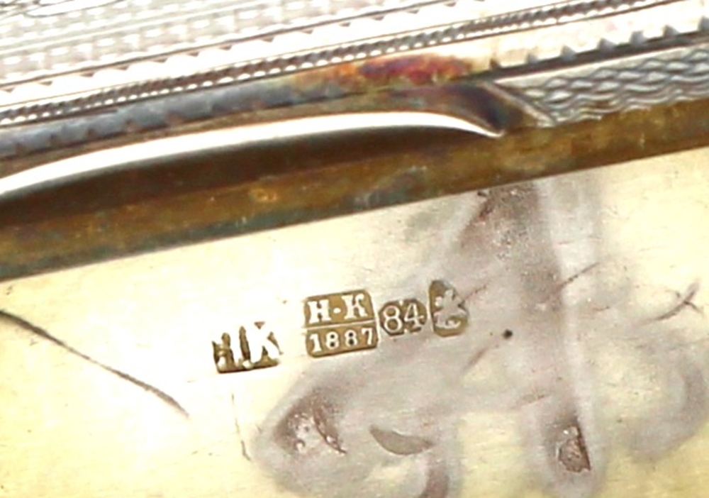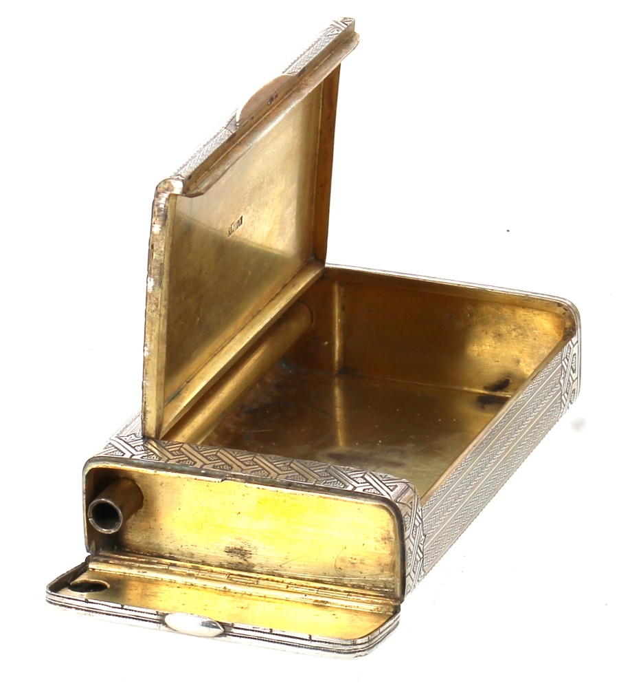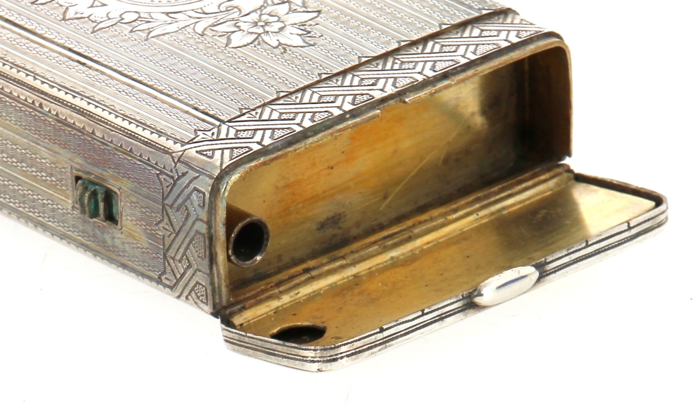 RUSSIE XIXème – Boîte à cigarettes en argent et vermeil, à 2 compartiments, 84 zolotniks, HK 1887, formant probablement boite à allumettes et briquet à amadou. Poids 248,80 grs
