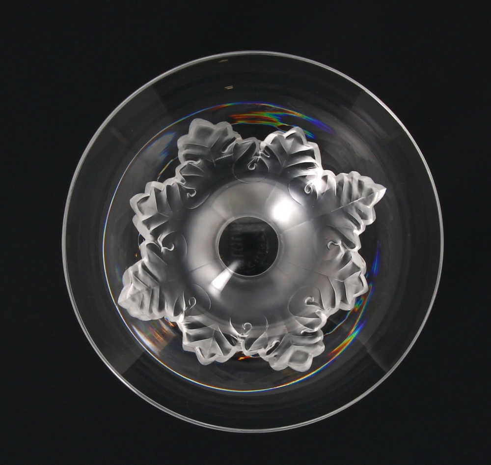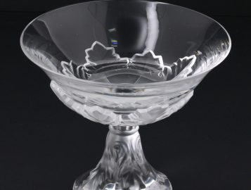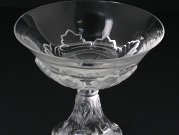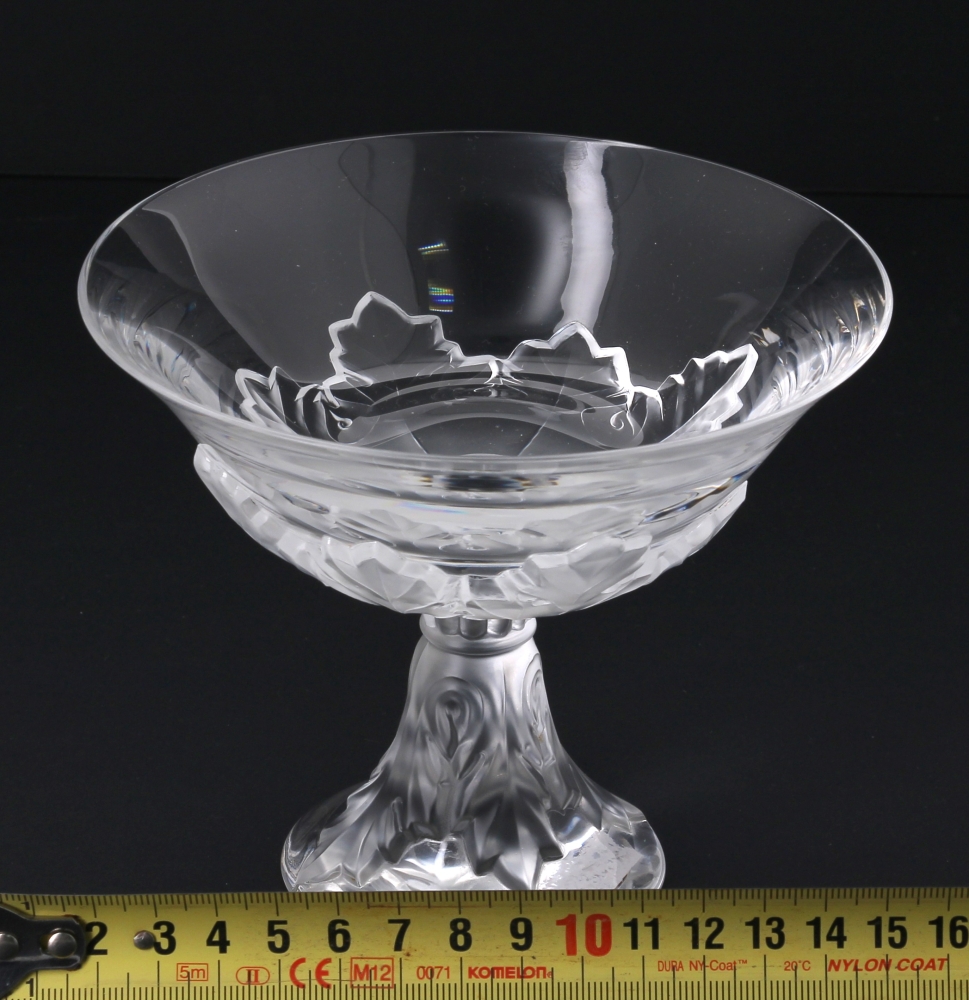 SAINT-LOUIS – Petite coupe sur piédouche en cristal à décor de feuillage, signée. H 11 x diam. 13,5 cm