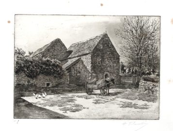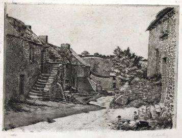 Henri DELAVALLEE ( 1862-1943) "Cour de ferme à la charrette", circa 1890, gravure à l'eau-forte,…