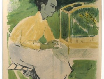 Louis TOFFOLI (1907-1999) "La fileuse", lithographie en couleurs, signée bas droite, tirage numéroté 1/125, 59…