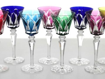 SAINT-LOUIS - 8 verres à pied en cristal de couleurs, modèle Camargue. H 20 cm