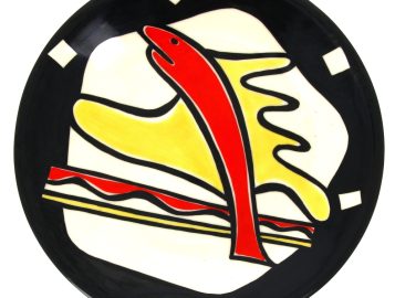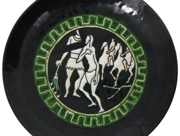 Roland BRICE (1911-1989), BIOT¨- Plat rond en céramique à décor d'une nature morte au poisson,…
