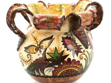 Paul FOUILLEN (1899-1958) à QUIMPER - Vase en faïence polychrome à col mouvementé à décor…