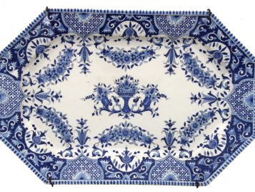 HENRIOT Quimper - Plat rectangulaire à pans coupés en faïence à décor Rouen en camaïeu…