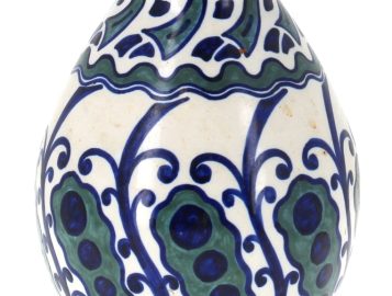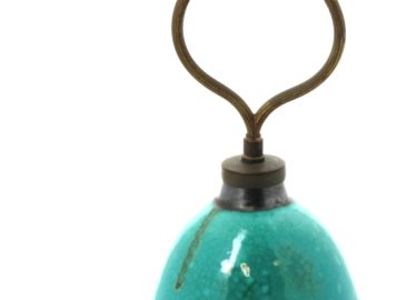 PRIMAVERA - Pied de lampe ovoïde en céramique turquoise, marqué "Primavera Made in France".en creux…