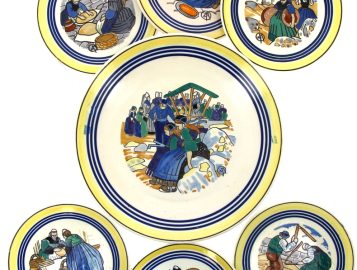 Mathurin MEHEUT (1882-1958) pour Henriot Quimper - Service de la galette en faïence émaillée polychrome.…