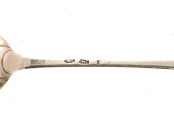 Cuillère à ragoût en argent XVIIIème, gravée d'armoiries. Poids 114 grs