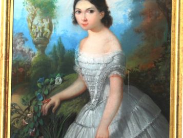 Urbain Jean VIGUIER (1803-1877) "Portrait de jeune fille au jardin", pastel, signé sur le côté…