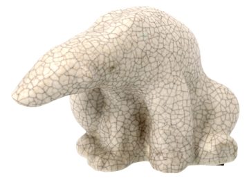 PRIMAVERA (non marqué) - Ours polaire assis. Sujet en faïence craquelée émaillée crème. Numéro gravé…