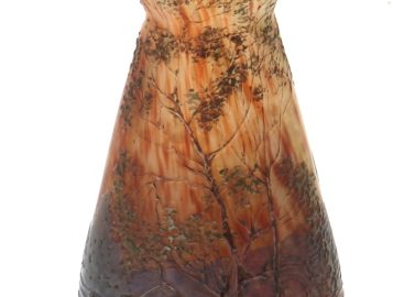 DAUM Nancy France - Haut vase tronconique à col plat circulaire. Épreuve en verre au…