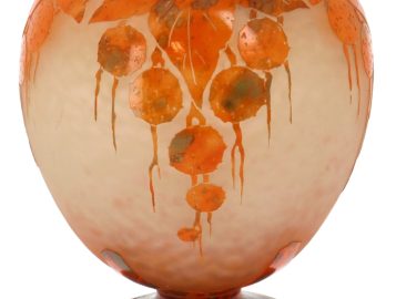 LE VERRE FRANCAIS - Vase ovoïde en verre détourré à l'acide à décor végétal, signé,…