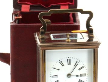 Pendule d'officier avec fonction réveil en laiton et verre biseauté, H 12 cm, avec son…