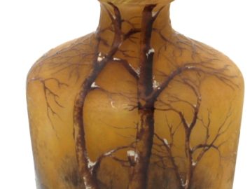 Olivier MALLEMOUCHE (Né en 1964) - Vase en verre multicouche à décor d'arbres sur fond…