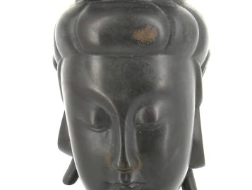 Vietnam Xxème - Tête de Quan Âm - Sujet en bronze patiné, reposant sur un…