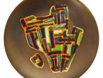 Guy TREVOUX (1920-2011) - Assiette en céramique à décor abstrait coloré sur fond brun, signée…