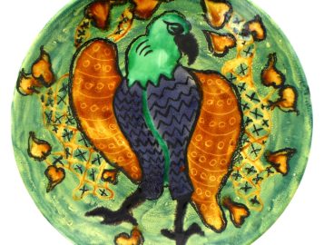 Gisèle TREVOUX (1928-2003) - Coupe sur talon en faïence polychrome à décor d'un perroquet, signée…