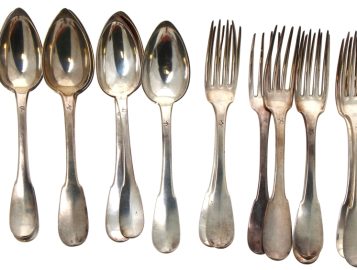 9 couverts mêlés en argent, poinçon vieillard, XIXème. Poids 1432,10 grs