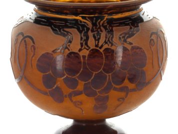 LE VERRE FRANCAIS - Vase sur piédouche en verre multicouche à décor de pampres de…