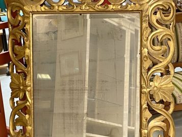 Miroir en bois sculpté et ajouré, doré à la feuille. Travail XIXème dans le goût…
