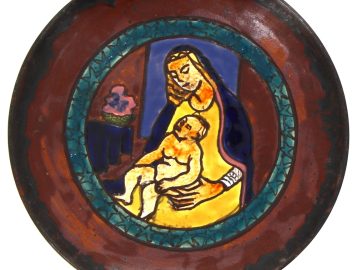 Jos LE CORRE - Plat rond à décor d'une maternité, diamètre 30 cm. Marquée HB…