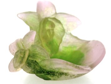 DAUM France - Petite coupelle en pâte de verre teintée rose et vert à décor…