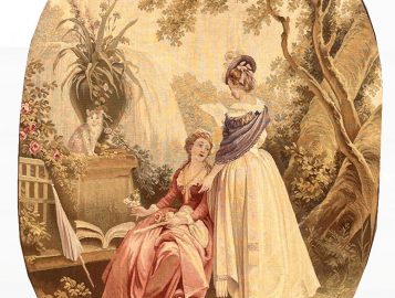 AUBUSSON - Paire de tapisseries à vue ovale : D'après Jean-Baptiste HILAIR "La lecture", et…