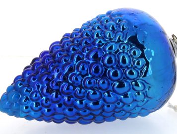 Forte grappe de raisin bien fournie. Verre églomisé de couleur bleue. Travail ancien. Décoration de…