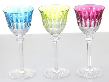 SAINT-LOUIS - Modèle "Tommy" - 3 verres en cristal de couleurs, H 20 cm environ