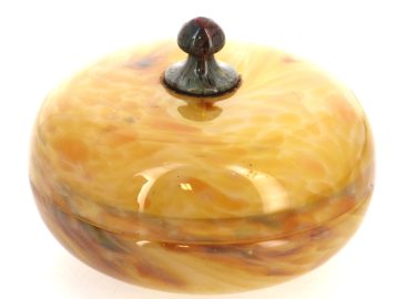 ART VERRIER SAINT-LOUIS - Bonbonnière ronde en cristal marbré. Signature gravée sous la pièce "Art…