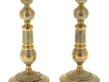 Paire de bougeoirs XIXème en bronze doré, H 29 cm