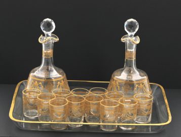 Service à liqueur fin XIXème en cristal rehaussé or comprenant un plateau 31 x 21,5…
