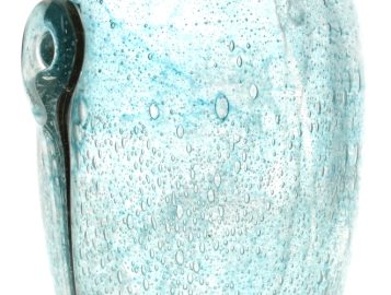 Vase en verre teinté bleu ciel et bullé, H 29 cm