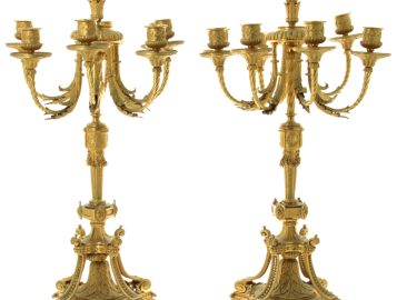 Importante paire de candélabres en bronze doré et laiton à 7 bras de lumière, style…