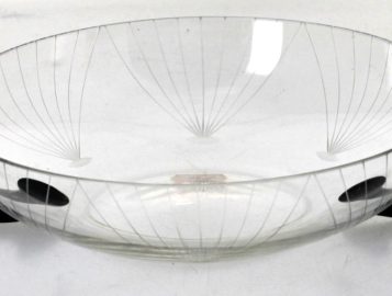 Coupe ronde ART DECO en cristal transparent, anses noires modelées à chaud, H 6 x…