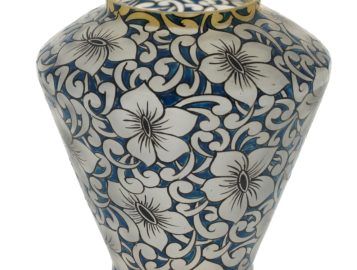 LEUNE - Vase en verre à décor de fleurs et rinceaux aux traits noirs sur…