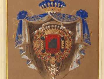 Famille de SEZE - Armoiries, gouache XIXème, 27 x 21,5 cm, encadrée (40 x 34…