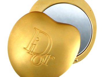 DIOR - Petit miroir de sac en métal doré, marqué au revers "Parfums Christian Dior".…