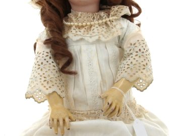 SFBJ Paris 4 - Petite poupée de caractère, corps en composition et tête porcelaine, yeux…